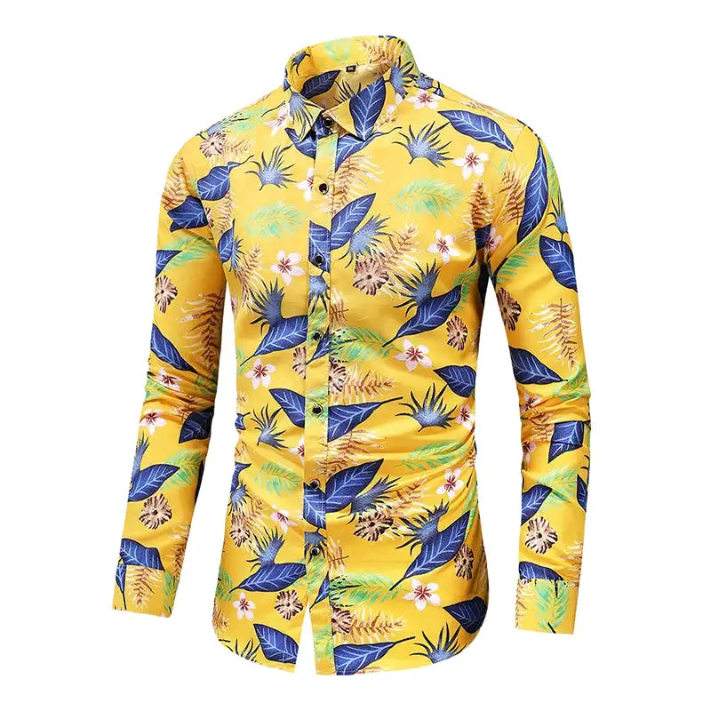Con nuestra Camisa Hawaiana Amarilla podrás vivir el exotismo a diario. Esta camisa de poliéster de alta calidad te transporta a un mundo de estampados tropicales y colores vivos. Con su corte amplio, mangas largas y cuello con solapa, ofrece una comodidad sin precedentes. Ideal para las estaciones más cálidas. Los botones de coco dan a cada pieza un toque original. Esta camisa es ideal para los días soleados y es imprescindible para quienes desean combinar estilo y desenfado.